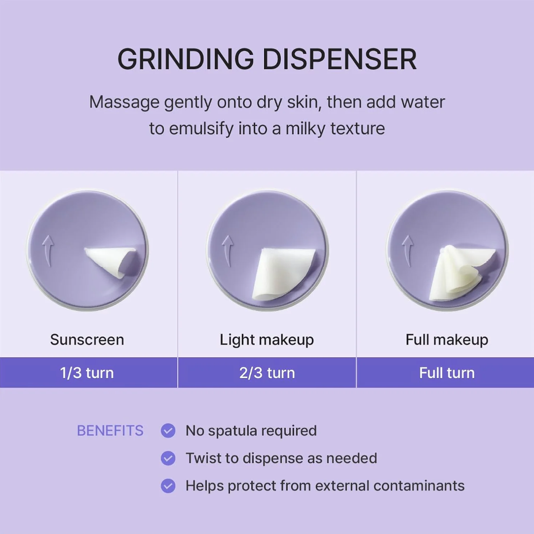 Gently massage onto dry skin in circular motions to dissolve makeup, sunscreen, and impurities.